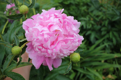 Most peonies available in nurseries produce big double flowers. They are beautiful, they smell like heaven, but their heavy blooms are weighed down by the slightest shower and the plants need to be staked to keep them from hitting the dirt. Plus, there is no way bees can penetrate those petals to find any pollen.